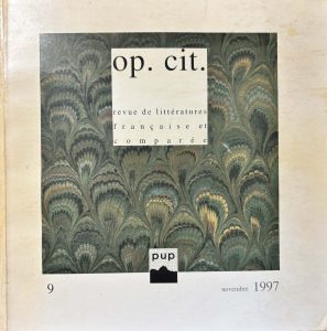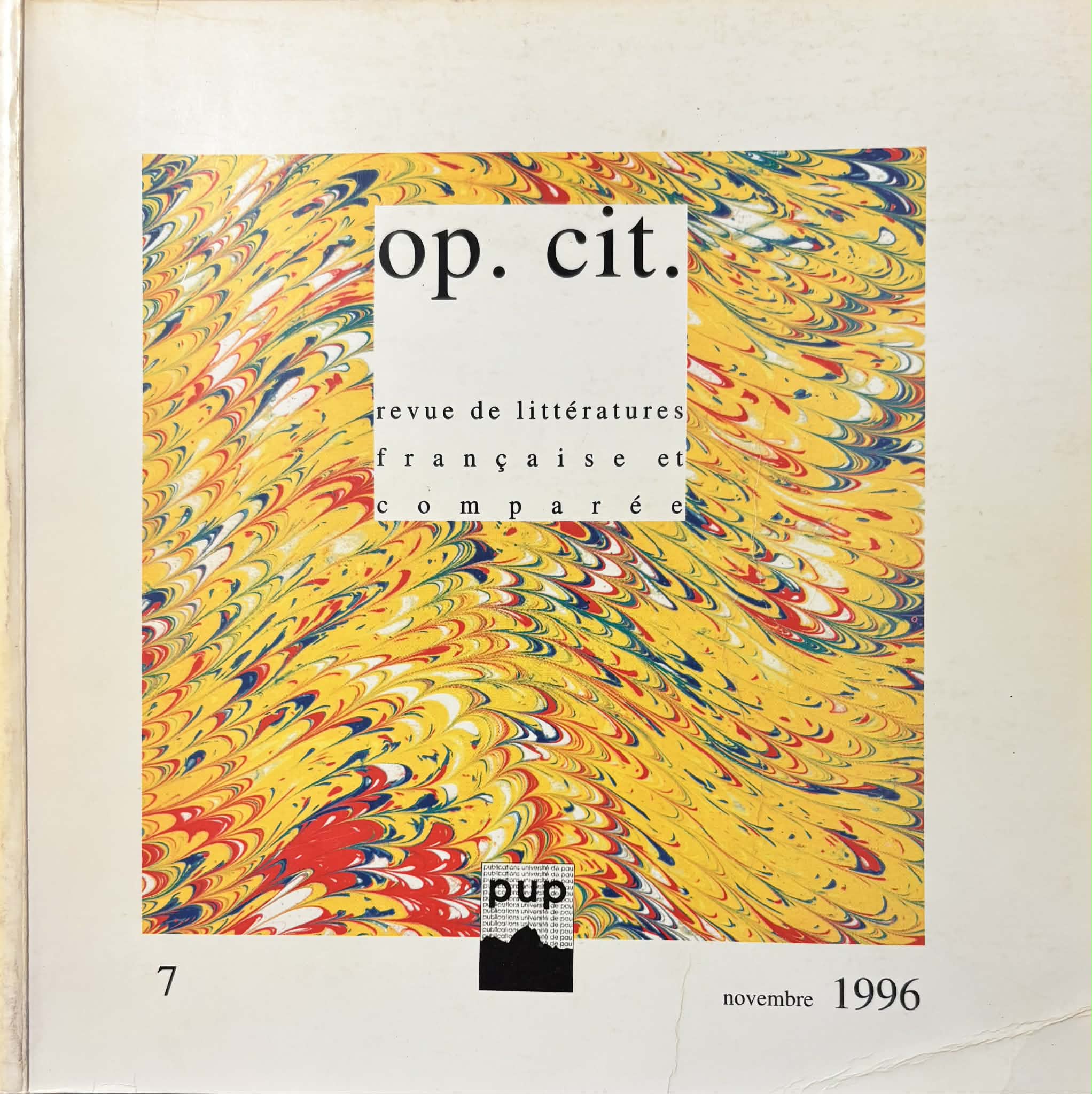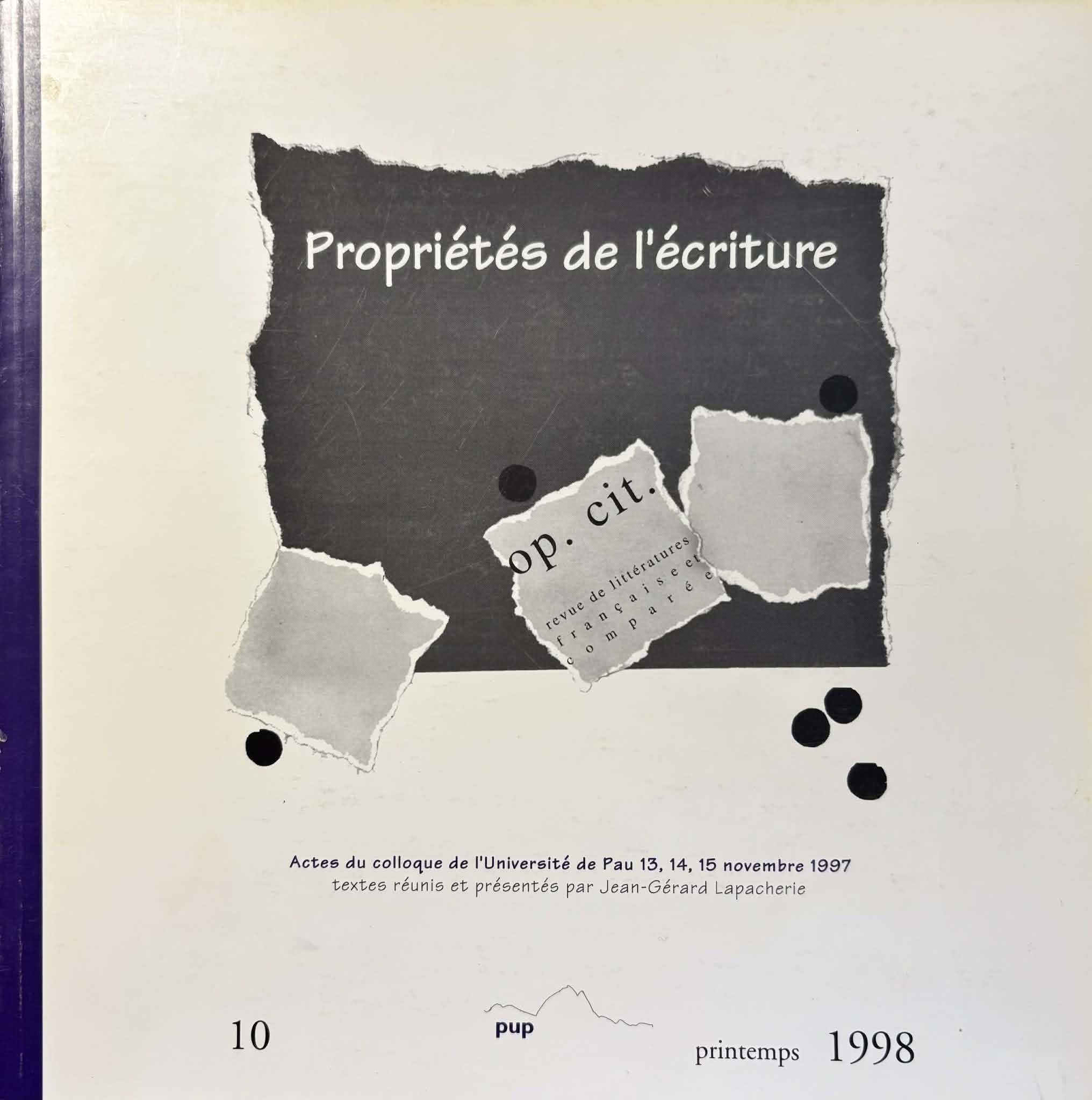 « L’écriture comme frayage : Claude Simon, La Route des Flandres« , in Revue Op. cit., n° 9, nov. 1997, publications de l’Université de Pau (PUP), 10 pages.