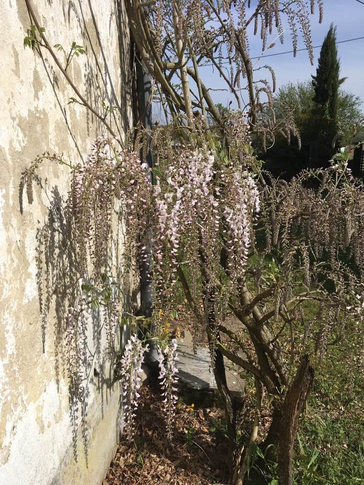 En cette fin de mars, le printemps s’installe à Marincazaou. Dans la cour, le camélia près de la pompe garde encore sa floraison et à quelques jours près, la glycine serait couverte de fleurs. Dans le parc, les chênes commencent à verdir.