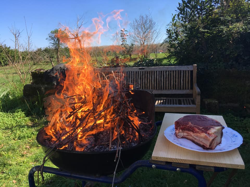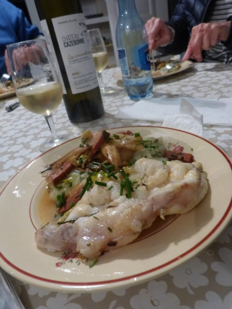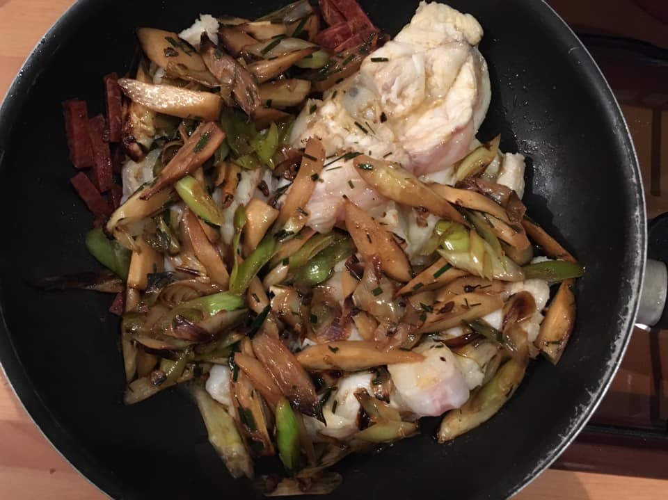 Image 1. Lotte juste grillée. Premières asperges d’Onesse-et-Laharie comme un clin d’œil à Michel Ohl. Sifflets de poireaux. Chorizo. Blanc parcellaire du Château Cazebonne de M. Jean-Baptiste Duquesne. Cela matchait bien comme une passe de Codor, un but de Maradona, un carambo de Pampi Laduche.